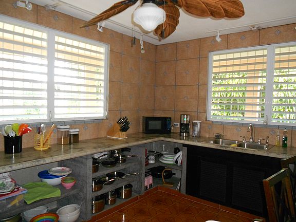 No hurricane damage whatsoever to the house. It is constructed of poured concrete with reinforced steel bars. Roof is also poured concrete. Make offer! Two story house. Upstairs 2 bedrooms, 2 baths, large kitchen and family room. Upstairs has balcony around 3/4 house and steps to the roof. Downstairs 2 bedrooms, 1 bath, kitchen, family room, and car port. Washer and dryer are on lower floor. House is sold with all furniture and appliances. Property has a variety of fruit trees. Property has potential for building additional home. Taxes are $1550 per year, unless you become a resident of Puerto Rico and then the taxes are minimal. Make offer on price of house in Bravos. Note also that the same owners has twelve acres of land in Vieques available for sale. The twelve acres of land has a house fully constructed of cement which needs minor things. Pictures available if requested by email (rivera.josephbarbara@gmail.com).