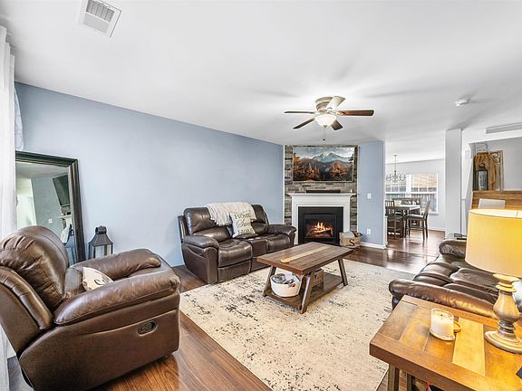 Welcome to a home where comfort, warmth, and everyday living come together effortlessly. The charming curb appeal beckons you in. The moment you step inside, the neutral tones and warm wood finishes create an atmosphere that feels instantly grounding. The bright kitchen is the heart of the home; spacious, and thoughtfully laid out with ample cabinets and counter space. Sunlight pours into the eat-in area through the sliding doors, drawing you naturally toward the expansive, fully fenced yard. It’s a rare amount of outdoor space: room for kids to run, pets to play, gardens to grow, and a patio designed for dinners al fresco and long summer evenings. Indoors, the livingroom fireplace creates a cozy spot to unwind, while the refreshed bathroom with double sinks and a tub adds a spa-like touch. The bedroom feels open and uplifting with its high ceiling and natural light. A double garage and wide concrete driveway offer abundant parking and storage. With easy highway access and amenities nearby and just far enough from the hustle -this home offers the perfect blend of convenience, comfort, and space to truly thrive.