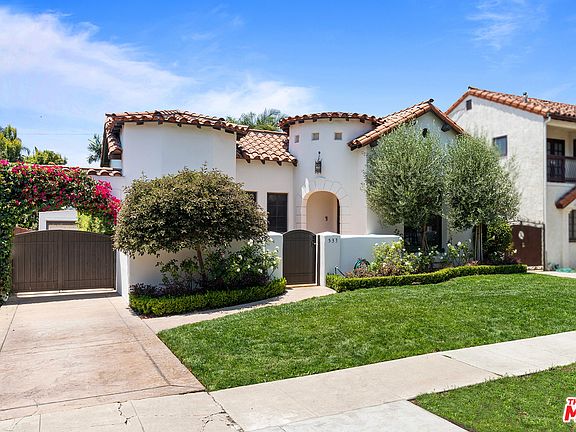 Welcome home to your romantic 1928 Spanish bungalow in the heart of Beverly Grove. On a quiet tree lined street, this beautifully updated home is within walking distance to some of LA's best restaurants and shops. Enter through your gated courtyard into a grand living room with soaring ceilings, historic arches and light-filled windows. Designed for entertaining, the chefs kitchen boasts Viking appliances, a charming breakfast nook and opens into the dining and living room areas. The primary bedroom, with french doors to the backyard, has a luxurious ensuite bathroom. The 2nd and 3rd bedrooms, both large in size, share a gorgeous bathroom with a classic clawfoot tub. The enormous backyard with a cabana is an entertainer's dream and has room for a POOL! You will fall in love with this timeless home in the heart of it all.