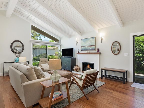Fresh and stylish, this single-level Santa Barbara cottage is a refined retreat in the desirable El Paraiso enclave. With vaulted wood-beamed ceilings and expansive windows framing mountain views, the reimagined floor plan offers open-concept living filled with natural light. The gourmet kitchen features a Wolf range, Bosch appliances, and flows to the living and dining areas with a new gas fireplace. Thoughtful details include California Closets and custom window treatments. Outside, a private, fenced yard with sculpted greenery invites relaxed outdoor living. Enjoy access to the community pool and a prime location near shopping, dining, trails, and beaches.
