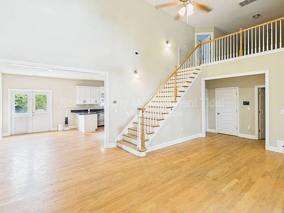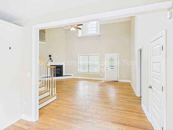 Step inside this elegant home and be immediately greeted by a grand foyer with soaring cathedral ceilings, setting the tone for the open, airy layout. Solid hardwood floors flow through the formal dining room, kitchen, living room, and hallways, creating a seamless, sophisticated ambiance.