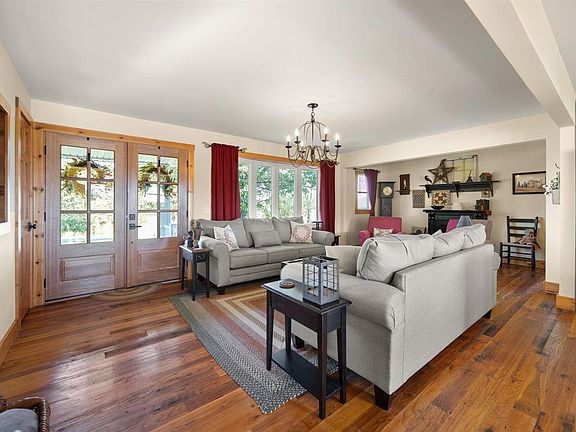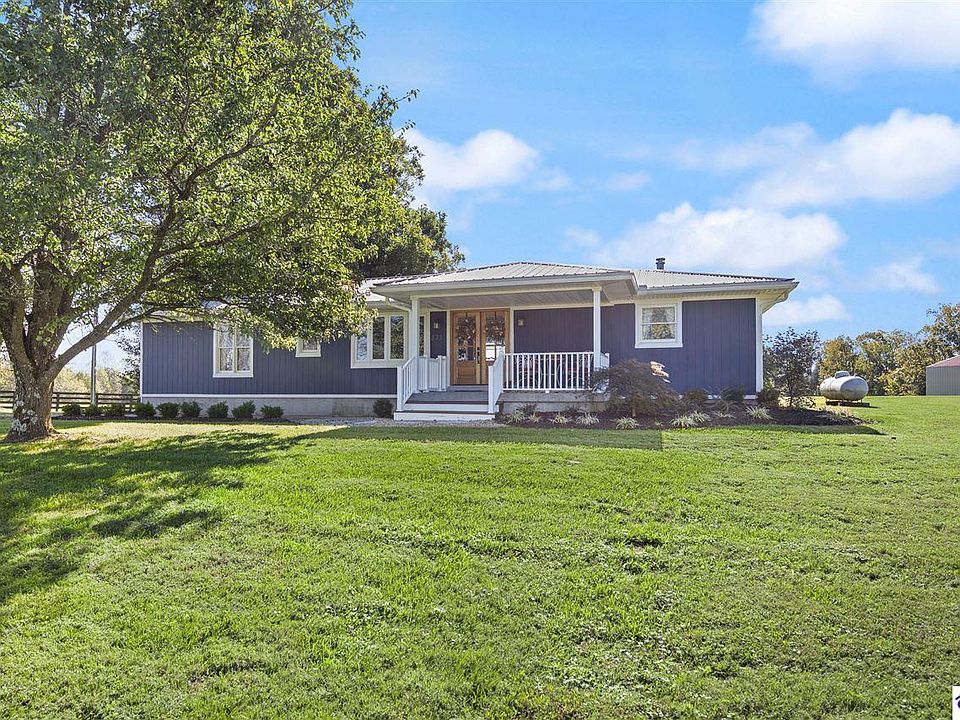 Imagine waking up to the peaceful sounds of nature, surrounded by picturesque landscapes. This stunning country home offers the perfect blend of rustic charm and modern comfort, providing that primitive, at-home feel you've been dreaming of. Step inside and be greeted by warm, wide-plank wood floors and an inviting atmosphere. The spacious kitchen, featuring lovely sage green cabinetry and rich wooden countertops, is a true chef's delight, perfect for gathering with loved ones. This serene sanctuary is designed for space and privacy: • Upstairs: Discover a peaceful haven with 3 generous bedrooms and 2 full bathrooms, including a primary suite that is a true escape. • Downstairs: Enjoy the flexibility of 2 additional bedrooms and another full bathroom, along with a convenient laundry room. With 5 total bedrooms and 3 full baths, there's room for everyone to spread out. The expansive, well-maintained yard and large detached garage and barn space complete this incredible offering. It's more than a house—it's your chance to embrace the simple, serene life!