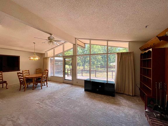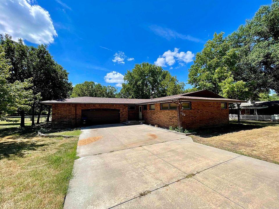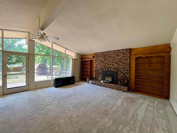 This all brick 1957 home is situated on a nearly half acre lot with established trees located on Post Rd in NE El Dorado. Main level consists of large living room with 3 bedrooms, 1.5 bathrooms, and kitchen is cabinet space galore! In 2021 a new fireplace insert was installed along with new carpet throughout, and a new hot water heater in Aug of 2022. The unfinished full basement offers a large stone fireplace and space to grow! Don't overlook the true safe room with bank style combo safe door. The 28'x 23' garage is flanked by a 520 square foot shop providing great space for any family project! The backyard offers a brick patio with deck, fenced in yard, and shed. This home will also transfer with the original abstract, a fun memento for the next owner! Make this your home today!
