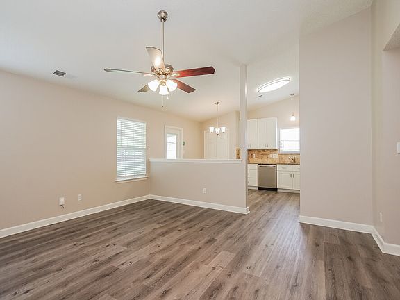 Pretty hardwood floorsCovered backyard patioGorgeous tile backsplashWalk-in closetOpen concept layoutWhite cabinetsStainless steel appliances