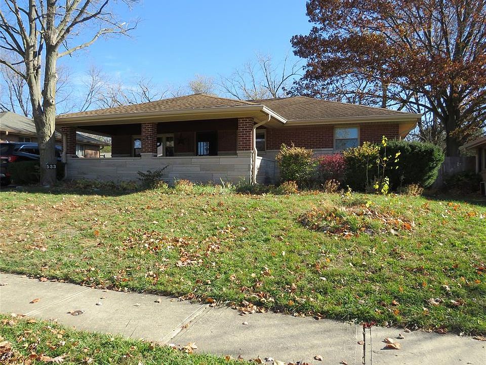 Welcome to this Beech Grove charmer! Sit and relax on the 23x9 covered front porch of this all-brick ranch home in a quiet, friendly neighborhood with mature trees and private rear yard. Enjoy plenty of backyard space for outdoor activities plus a view of the creek and spacious patio area. Home features 3 bedrooms, 1 full bath and separate living and family rooms. Wood burning fireplace, Champion thermal-pane windows, updated 200-amp electric service, eat-in kitchen and all custom built oak cabinetry throughout. Home is part of an estate and being sold as-is.