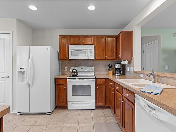 Hugging a deep greenbelt that adds glorious privacy at the back yard, this Sun City Texas Gray Myst greets you with tidy landscaping beds and a stone path leading to the courtyard-style front sitting porch. Inside, twin windows add natural lighting at the Foyer, off of which resides the Open Kitchen where classic white appliances add timeless appeal. A Pantry Closet and a bayed Breakfast Nook join with the plentiful cabinets and counter space, which circle the space. A breakfast bar gently separates the Open Kitchen from the Great Room with Dining, where tile floors, seen throughout the home, form a perfect back drop for favorite rugs. Off the Breakfast Room a Laundry Closet includes handy shelving for organizing, while a door in the Breakfast Nook opens to the Two-Car Garage making bringing-in groceries as easy as pie. Twin sets of full-view glass doors in the Great Room reveal the Extended Covered Patio with stone seat wall and greenbelt location. Those same views repeat in the separated Primary Bedroom located at the rear of the home. There, a trio of windows frame the bucolic vista. Meanwhile, the en suite Primary Bath hosts dual vanities, a seated shower, and a generous Walk-in Closet. At the front of the home, Two Guest Bedrooms flank the full Guest Bath, while a spacious Storage Closet and a convenient Linen Closet are off the Hallway. Ceiling fans pepper the home with breezy comfort, while window treatments are included. Located near upcoming shopping at Ronald Reagan Blvd., this location is also near myriad activities of Cowan Creek Amenity Center.