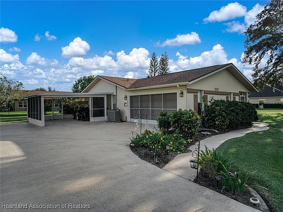 Meticulously maintained 2-bedroom, 2.5-bath split floor plan home located in desirable Spring Lake. This spacious residence sits on over 0.40 acres with a beautifully manicured lawn and offers more than 1,800 living square feet. The home features generously sized bedrooms and a new roof installed in 2023 for added peace of mind. The kitchen provides ample cabinet and counter space, perfect for everyday living or entertaining. The two-car garage includes a Skeeter Beater, added air vents for comfort, and plenty of storage. It has been thoughtfully used as a versatile space for gatherings and activities over the years. An attached screened-in carport offers additional parking or storage for cars, golf carts, or toys. The extended concrete driveway allows for future expansion, including the potential to add an additional garage for RV or boat storage. A convenient half bath is located just off the kitchen in the heart of the home. Don't miss the opportunity to see this well-cared for home in a beautiful community, schedule your showing today!