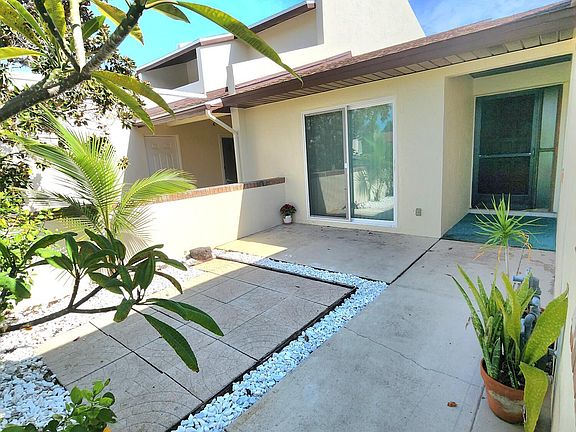 Welcome to paradise, this is what beachside living is all about! You'll love the beautifully updated kitchen, the open floor plan and vaulted cathedral ceilings that allow natural light to flow through. You have a front porch for morning coffee and a back porch for relaxing evening cocktails. ALSO: NEW roof: 2021 (sloping added = no standing water after rain), NEW gas hot water heater 2022, NEW Tesla hook-up in garage! PLUS- 2 sparkling pools, low HOA's and DeSoto Park is close by where they have exercise stations = also a hot spot for Manatee's. The beach is a bike ride away. Welcome Home...Take this blank canvas & make it your dreamy Picasso.
