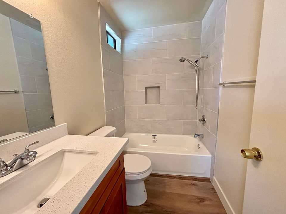 Lovely Monrovia townhome style apartment for rent. 2 bedrooms & 2 1/2 baths. Brand new kitchen-new cabinets, new counter top etc. Kitchen with dishwasher, garbage disposal, gas stove and pantry, New luxury vinyl floor through out, i.e. kitchen, upstairs bedrooms and 3 bathrooms. New carpet for the stairs. Brand new bathrooms, central A/C. Both bedrooms with its own full bath. 2 cars enclosed garage, laundry hook up inside the garage. Convenient location to markets, schools, 210 hwy. Six months lease, require good credit and proof of income. Credit check $30/per person. Rent $2500, security deposit $2500. Owner pays water and trash. Tenants responsible for electricity and gas. six month lease. Credit check fee per person is $30.