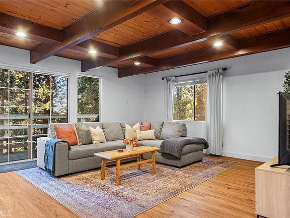 Downstairs is a large recreation room with a slider that opens onto the expansive back deck, offering an immersive forest experience. You will love the peaceful setting and cozy feel of this home. Located within a 7 minute drive from the Lake Arrowhead Village, Skypark and the enticing restaurants and gift shops of Skyforest. Furnishings negotiable.