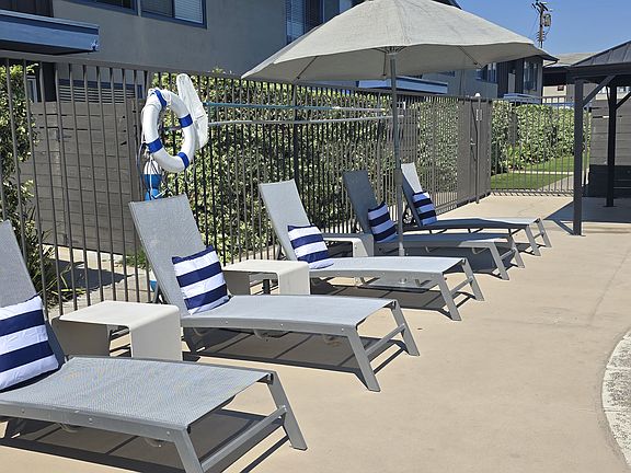 Features luxury community amenities including a sparkling swimming pool, cozy BBQ and picnic areas, covered and open parking, on-site laundry facilities, security cameras and controlled access.