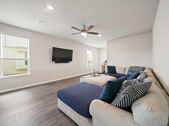 Your perfect home for the holidays is HERE! Built in late 2023 (like NEW!), this spacious floorplan (the largest in the neighborhood) is no longer offered by the builder, making this an excellent opportunity for you! Enjoy a gourmet kitchen with granite counters, 42" cabinets, stainless steel appliances and incredible countertops that open to the dining & family rooms. Upgraded luxury vinyl plank flooring runs throughout the first floor. The spacious primary suite features a tray ceiling, window seat, soaking tub, walk-in shower and large closet. Upstairs offers a GAME ROOM, MEDIA ROOM, STUDY/OFFICE SPACE, 3 big bedrooms & a full bath with granite. The fenced yard has NO BACK NEIGHBORS, a sprinkler system and covered porch. Energy-efficient features include double-pane windows and a radiant barrier attic system to help REDUCE UTILITY COSTS. Privacy blinds included! IDEALLY LOCATED near Hwy 6 and 288, this home offers convenience & comfort and is MOVE-IN READY! Schedule a showing today!