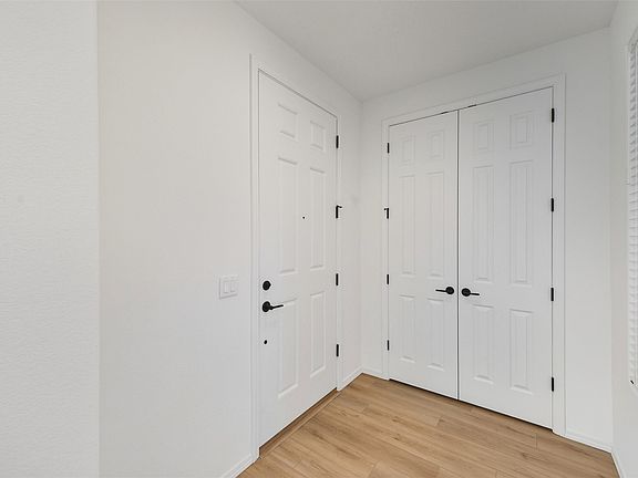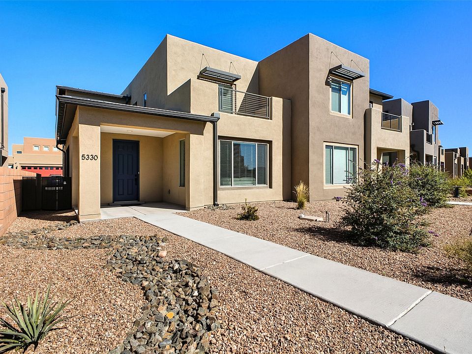 Welcome to your nearly new, 2023 Pulte home, the lovely covered entry portal provides protection from the weather, inside you’ll be surprised by the double door closet providing ample storage space. The light and bright floor plan begins with a spacious living room that blends well with the open-concept kitchen and dining space, luxury vinyl flooring throughout. Your well-equipped kitchen features a generous island with seating, spacious pantry, wall oven, 5-burner gas cooktop, modern finishes, newer stainless-steel appliances, custom cabinets, and beautiful quartz countertops. Two sliding doors across from the island offer you easy access to enjoy the lovely Santa Fe weather while you lounge under your covered patio in your private-side courtyard. Just off the kitchen, adorned with beautiful French doors, you’ll find a dedicated flex space that you could use as an office, den, or media room, centrally located but separate. The first floor also features a full-sized laundry room, below stair closet/storage and easy access to your two-car garage, all providing you more storage spaces. Upstairs, you’ll discover your versatile bonus room, perfect for a kids’ playroom, home gym, media space, the opportunities are endless. Your home comes complete with two bedrooms that share a full bath in the hallway, and a spacious primary owner’s suite. The primary en-suite bath features double vanities, a generous glass-enclosed tiled shower, and a private water closet, all connected to a large walk-in closet. Your home features an on-demand, energy efficient, tankless hot water heater, central heat and refrigerated A/C, all designed to provide hours of indoor comfort. The Las Soleras community is located just minutes from I-25, the 599, medical facilities, and a plethora of shopping and dining options. Bordering the Las Soleras community you’ll find a large open space featuring a park that offers a basketball court, playground, dog run, walking trial and a cabana for entertaining.