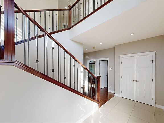 Fully fenced backyardSpacious deckLush lawnRaised garden boxesVersatile patio areaElegant chandelierCoat closet