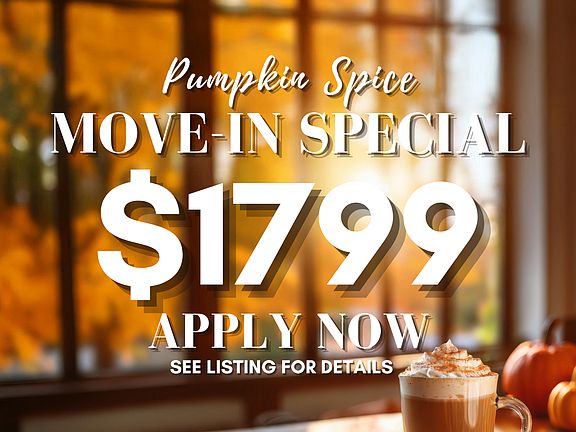 Ready for Immediate Move-In! PUMPKIN SPICE MOVE-IN SPECIAL! $1799 MOVE-IN, if moved in on or before 10/2/2025 (latest possible move-in date)! Move-In special includes the refundable security deposit, admin fee and ONE WEEK FREE RENT! Prorated rent is due one week after move-in! 1st full month of rent is due on NOV 1ST! (Animal fees are not included in this move-in special and are due at move-in if applicable)