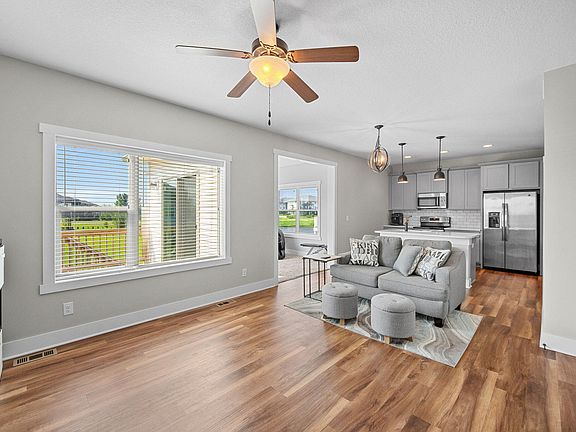 West Ames convenience to Hwy 30 and I-35. 3 bed, 3 bath 2 story with main level 12x12 sunroom and 12x10 deck. Main level has 9 ft ceilings, electric fireplace and informal dining area. Kitchen has an island with sink. Good cabinet space and large walk-in pantry. Locker style storage in entry from garage. Spacious upstairs landing. Good study area. Primary bedroom has a large walk-in closet. Walk out basement, pre-plumbed for a bath and ready for finishing. New shingles 8/19/24, gutters and siding on the back of the house replaced. Work completed Sept 7th 2024.