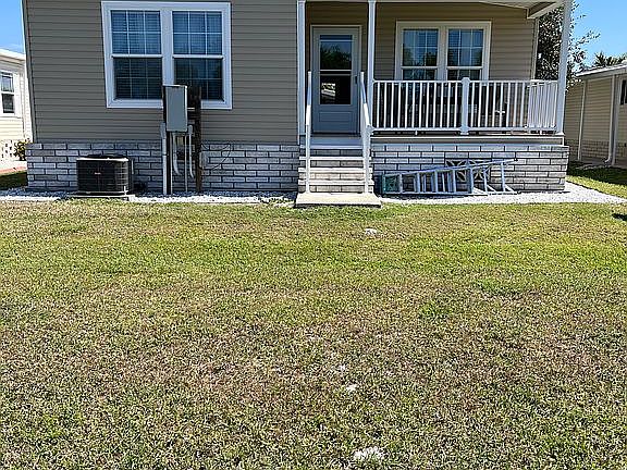 MOTIVATED SELLER, ALL REASONABLE OFFERS CONSIDERED! 55+ age qualified community. Gorgeous Contemporary 2020 Skyline Bayport with 3 bedrooms, 2 full baths and a Large Great Room! The oversized two car driveway/carport will leave you room for your golf cart and locked storage. This home boasts a front and rear porch with beautiful views of the Florida sunrises and sunsets. When entering this beautiful home you'll immediately notice the expansive vaulted ceilings and white crown molding accents. This home has a very desirable Open Concept starting with a beautiful center island kitchen with solid wood white cabinets with soft close drawers and brushed nickel pulls and knobs. All countertops throughout were replaced with granite. A large 3 level pantry closet offers plenty of storage. Whirlpool kitchen appliances are included. The granite countertops offer an abundance of space which include a breakfast bar great for entertaining. All flooring is solid surface natural wood-like surface. The kitchen leads to the dining room with brushed nickel lighting that flows into the open living area and custom built-ins to accommodate all your entertainment media needs. Plenty of windows invites ample natural light and a view to the rear porch. The master bedroom accommodates large furniture, and includes a large walk-in closet with ample space and storage. The master bath has dual sinks with new granite countertops and new faucets and white cabinets. HOA INCLUDES Lot Rent, Lot Maintenance, Taxes, and all community amenities.