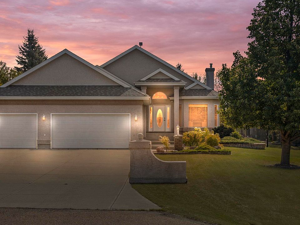 IF ONLY THE FINEST IN LUXURY WILL DO, THIS HOME IS FOR YOU! This COMPLETELY RENOVATED executive home, sits on a pristine 0.5 acre lot, mere moments from Edmonton. Situated in the highly desirable area of Lakeshore Estates, you will love being within a short distance to both nature & city. Offering the perfect blend of luxury, space & functionality, this exceptional property features 5 spacious bedrooms, 3 modern bathrooms & the rare combination of a triple attached garage & double detached garage - both heated! Inside the home has been completely transformed with high-end features at every turn, such as: QUARTZ COUNTERTOPS, GLEAMING HARDWOOD FLOORS, SOARING VAULTED CEILINGS, LUXURIOUS DOUBLE-SIDED FIREPLACE & SO MUCH MORE! The airy basement contains a large family-room area, which is complimented by 9ft ceilings. The backyard is a nature-lovers paradise, w/ a huge deck w/ awnings, hot tub, gardens, firepit & RV storage. Located mere moments from BIG LAKE, you won't want to miss out on this one!