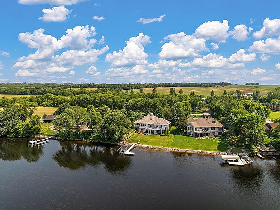 An extraordinary custom-built home with over 5200sf on a stunning 1/2 acre lot with 100 feet of level lakeshore, offering unparalleled amenities, features, and the highest quality of craftsmanship. This truly remarkable home has one of the best level lakeshore lots on Cannon Lake and the exquisite panoramic views can be captured from the walls of windows, the sprawling 630sf deck, the 840sf patio or the cozy sun porch that is perfect for appreciating each season. The stunning entrance sets the tone with its soaring ceilings, built-in features, elegant tile flooring, an open staircase, and hand-painted walls. Bathed in natural light, the home features architectural tray ceilings enhanced by uplighting and skylights that create a warm ambiance. The gourmet kitchen is a chef's dream, boasting state-of-the-art appliances, custom cabinetry and a center island. Adjacent to the kitchen, the informal dining area and family room seamlessly transitions to the outdoor deck and sun room where you can savor meals with the lake as your backdrop. The quintessential 883 sq ft primary suite offers double sided fireplace, dual walk in closets and a luxurious en-suite bathroom featuring a jacuzzi tub, walk-in shower, and dual vanities. The walkout lower level is designed for entertainment and convenience featuring a second kitchen, billiard room, a second family room, 700 sq ft of storage with direct access to the garage, 2 additional bedrooms, and more! Don’t miss the opportunity to make this dream home your reality! With its meticulously designed spaces and breathtaking surroundings where every detail has been thoughtfully curated to enhance your living experience. Imagine waking up to the serene beauty of the lake, enjoying coffee on the deck or hosting gatherings in spaces that flow effortlessly from indoors to out, creating unforgettable memories. This is more than a home; it’s a lifestyle waiting to be embraced. (The list of features is extensive—please refer to the supplement for additional details)
