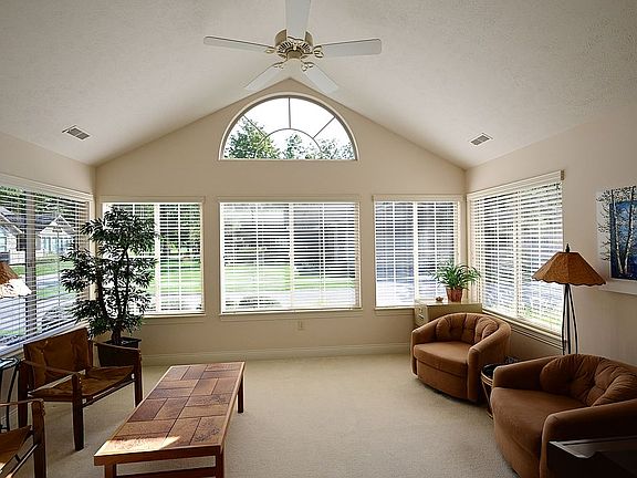 The four-season sunroom is a wonderful space with eastern, southern and western exposures, providing natural light throughout the day, along with a view of Maple Hill Golf Course. There are custom blinds on all windows. Most lighting is dimmable, and multiple ceiling fans enhance comfort.