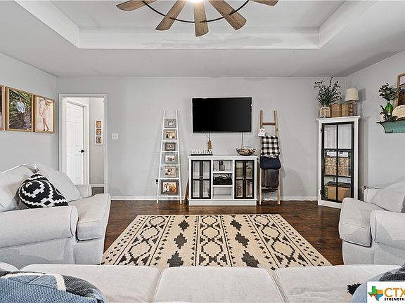 Adorable home in Salado ISD! Spacious, open living area, 1894 SF, 3 bedrooms, 2 baths and 5 acres that are fully fenced! Updates throughout, including flooring, bathrooms and kitchen. Master bathroom features a stand alone tub and walk-in shower. Formal dining could easily be converted to fourth bedroom. Feel the nice breeze on top of the hill from the covered porch or the covered patio! Call to schedule your showing today.