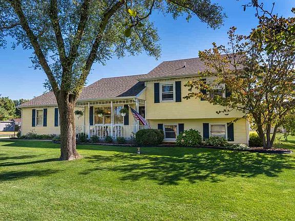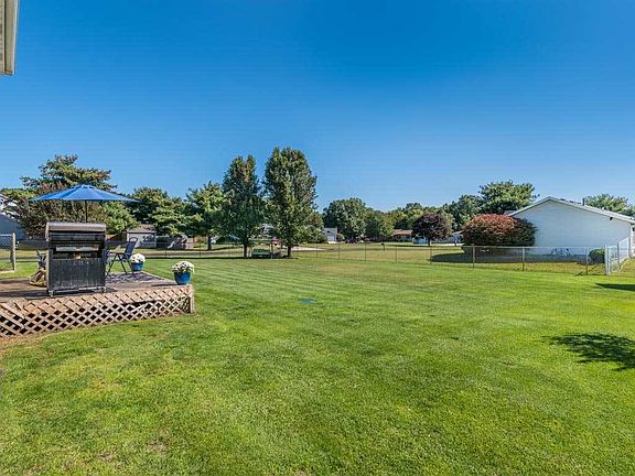 Charming immaculate home on large corner fenced lot with easy access to either Elkhart or St. Joseph county. Former Parade home. Enjoy the view from the covered front porch or from the rear deck overlooking the large yard. Home has many value packed upgrades including updated kitchen with gorgeous pencil tiled backspash, new sink, faucet, range hood, countertops. Snack counter in kitchen. Roof new in 2013. Lenox AC/Heating system new in 2011. Bathrooms updated with new vanities, faucets, light fixtures. New paint in every room. Top floor has newer windows. Wood-look laminate flooring in living room. Ceramic tile in kitchen and baths. Newer carpet. Large family room. Wired for security system. Irrrigation system. Home Warranty included! HOA appears to be inactive.