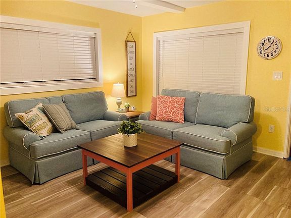 Welcome to downtown NPR! Hurry up and get your offers in!! Imagine yourself in this immaculate 2bedroom 1 bath home. This is a great 1st home or investment for your future. As you enter the home you are set at ease with the cool atmosphere of the freshly painted neutral tones. In the living room there is a cleverly placed built in desk with bookshelves perfect for working from home making best use of your space and organization. This home has quality upgrades from the handsome window encasements to the durable vinyl flooring and bright clean kitchen with subway tiling. Be sure to bring your bicycles or get your walking shoes on to check out the downtown lifestyle! There is an abundance of festivities, celebrations and parades in this golf cart friendly community. You will find yourself immersed in restaurants, bars, breweries, quaint shops, the New Port Richey aquatic center(gym and indoor basketball courts), galleries,The Richey Suncoast theatre, Simms Park, Orange Lake, the public boat ramp, the Pithlachascotee river and so much more!! Be sure to set up your appointment while this outstanding property lasts!! Own full contents of this adorable home with a full price cash offer!