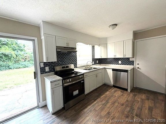 Beautifully totally renovated 3 bed 2 bath brick home minutes from the mall and base. New roof, new cabinets, countertops, backsplash, paint, flooring, stand up shower, toilets vanities, etc. Perfect starter home and has an outside storage building. Will not last long.
