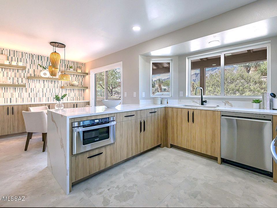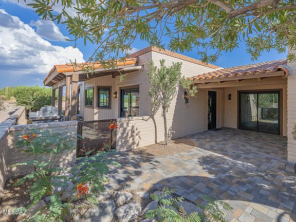 Perched high on a Ridgetop in the Catalina Foothills, this incredible single-story home offers the ultimate in modern desert living w/ sweeping panoramic views of the mountains by day & sparkling city lights by night. Completely re-designed w/ a fresh contemporary vision, the home features a chef's kitchen w/ sleek quartz counters, hand crafted cabinetry & clean architectural lines that blend function w/ style. The luxurious primary suite feels like a private retreat, boasting a cutting-edge spa-inspired bathroom designed for pure relaxation. Expansive windows & open living spaces maximize the extraordinary views, while the single-level layout creates ease of living & flow. An exceptional combination of location, design & comfort--this home is as inspiring as its surroundings.