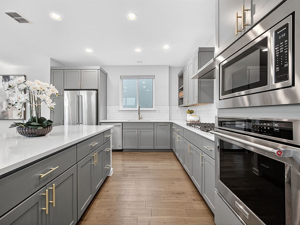Warm wood floorsAbundant natural lightStainless steel appliancesLow-maintenance artificial turfBuilt-in barDual-pane low-e windowsQuartz countertops