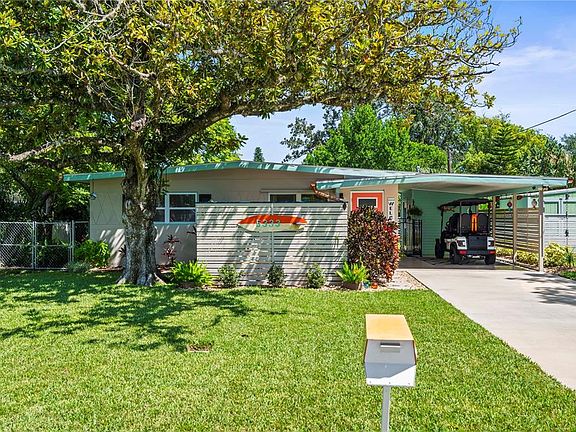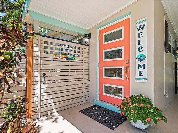 Welcome to your very own slice of paradise in New Port Richey, just minutes from the charm of downtown. This beautifully designed Key West–inspired 2-bedroom, 1-bath home combines comfort, character, and lifestyle — perfect for first-time buyers, a young couple, or investors looking for the ultimate Airbnb or vacation rental opportunity. From the moment you arrive, the property stands out. A long driveway, shaded by a stunning mature tree, leads you to a vibrant entryway with a gated patio that feels like your own private beach retreat. The colorful front door and tropical touches immediately set the tone for what’s inside. Step into a warm and inviting living room that flows seamlessly into the kitchen and dining areas. The kitchen boasts stainless steel appliances, beautiful cabinetry, and a custom backsplash that adds personality and style. Just off the kitchen, the dining room shines with natural light, making it the perfect place to enjoy meals and gatherings. The home features two well-appointed bedrooms, a beautifully updated bathroom with modern tile, and one of the most fun and functional laundry rooms you’ll ever see — bright, themed, and full of coastal character, turning everyday tasks into a lighter experience. Outside, the backyard is where this home truly shines. Enjoy a dedicated grilling area, a tiki-style seating spot under the palms, and a sparkling pool to cool off during Florida’s sunny days. A nautical-inspired red shed adds extra storage or could be reimagined as a creative space. Every corner of the yard is thoughtfully designed to make you feel like you’re on vacation. This home isn’t just a place to live — it’s a lifestyle. Whether you make it your own tropical retreat or transform it into a standout short-term rental, the possibilities are endless.