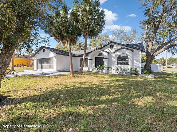Active Under Contract - Accepting Back Up Offers. This beautifully renovated 3-bedroom, 2-bathroom home sits on a large corner lot in the heart of Spring Hill and is ready for you! With a brand new roof, new A/C, and new garage door and motor, this residence combines modern convenience with a warm, inviting atmosphere. As you step inside through the double entry front doors, you'll be greeted by vaulted ceilings and a spacious living room adorned with stylish laminate flooring. An adjacent office space provides flexibility and can easily serve as a fourth bedroom or playroom. The heart of the home is the kitchen, featuring elegant stone countertops, stunning white shaker cabinets, and stainless steel appliances—perfect for the home chef! The primary bedroom offers ample space and features double closets for all your storage needs. The ensuite bathroom is a true spa retreat, complete with dual sinks, extra vanity space, a linen closet, a luxurious jetted tub, and a modern walk-in shower. Two additional guest bedrooms boast generous closet space and share a beautifully updated bathroom with a walk-in shower and contemporary vanity. Just off the kitchen, you'll find a convenient interior laundry room. Step outside to the screened lanai, overlooking a spacious backyard surrounded by vinyl fencing, ideal for privacy and outdoor enjoyment. A handy shed provides extra storage space for your gardening tools or outdoor equipment. With no HOA fees or deed restrictions, you have the freedom to make this home truly yours. Located near shopping, dining, schools, and Florida's stunning Nature Coast, you'll have access to nearby attractions like Weeki Wachee Springs State Park, known for its water slides and mermaid shows. Easily accessible via US-19, you're just a short drive from the sponge docks of Tarpon Springs and the beautiful beaches of Clearwater and St. Petersburg. Plus, the Suncoast Parkway provides quick access to Tampa and all its amenities. This incredible home won't last long! Schedule your viewing today and seize the opportunity to make it yours!