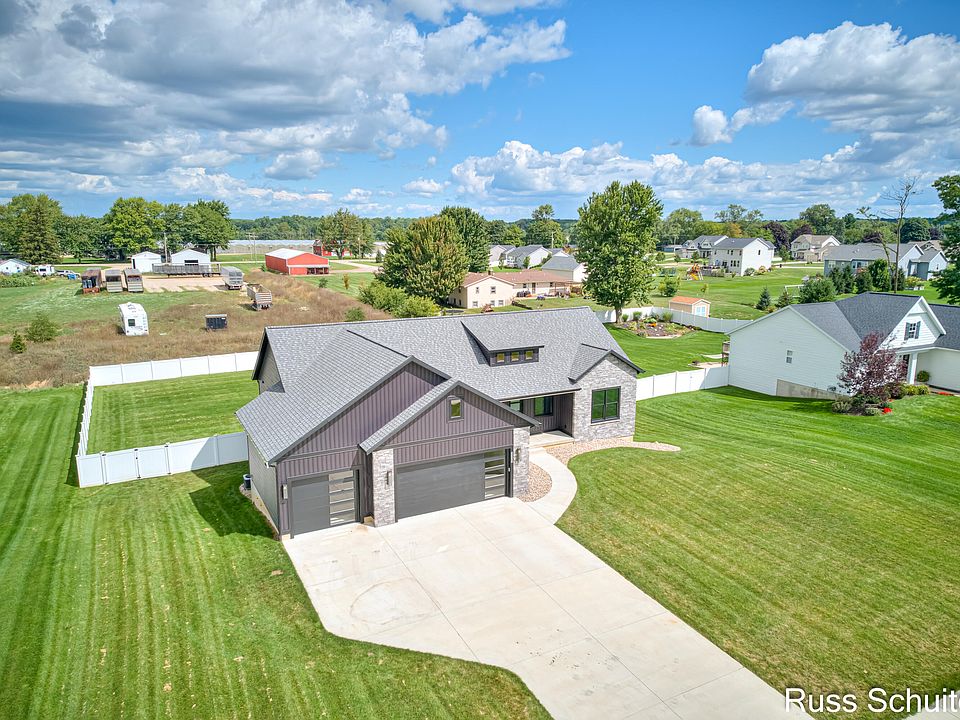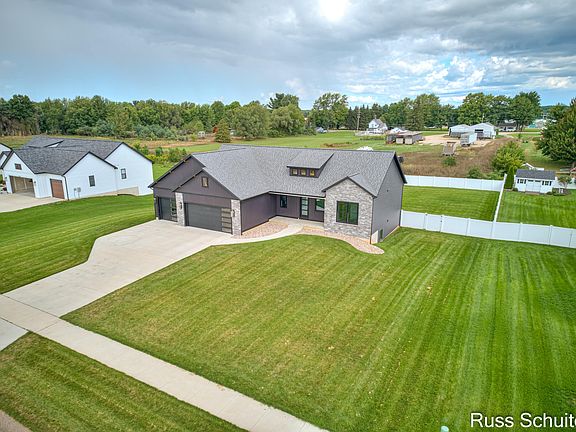 Simply stated--incredible! Built in 2022 and positioned in the popular Hudsonville school district, this three bedroom (could be converted to 5-6 bedrooms), 2.5 bath rancher has been lightly lived in and is handicap accessible featuring wide hallways and doorways. Nestled near the end of a cul-de-sac in a marvelous neighborhood, this home offers main floor living at its finest complete with beautiful high-end finishes and numerous built-ins. Trumpeting an open floor plan, the home boasts an endless amount of extras for today's savvy buyers. Highlighting the exterior this beauty features a beautiful vinyl fenced yard with two double gates. The exterior also possesses a beautiful, plush lawn with underground sprinkling, and exterior with tuxedo color siding with creative mines shadow play stone veneer. Some additional noteworthy exterior items include a 20x6 covered front porch, a 13x 12 deck with stairs, and a three stall garage with a second set of stairs for basement access. The interior offers nine foot ceilings, 400 series Andersen windows, wide trim, recessed lighting, and an 11x6 laundry room with a pet washing station area. Other interior amenities include a tankless water heater, beautiful kitchen area with an 8x3 quartz counter-topped island, kitchen pantry with electronic access code, and a private primary suite with dual sinks, 11x6 walk-in closet, and an incredible tiled shower. The basement is a blank canvas with daylight windows and is plumbed for an additional bath and second kitchen. Furthermore, the home is phenomenally insulated! Please hurry--this is a beauty! Buyer and buyer's agent to verify all information.