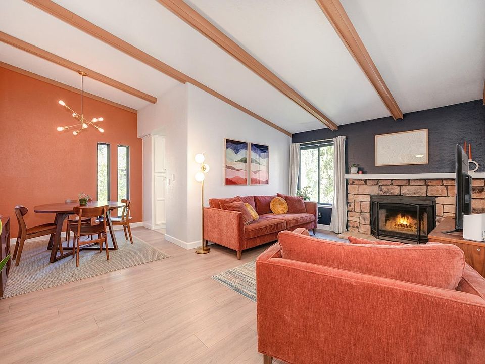 Cozy fireplacePrivate balconyUpdated bathsVaulted ceilings