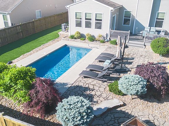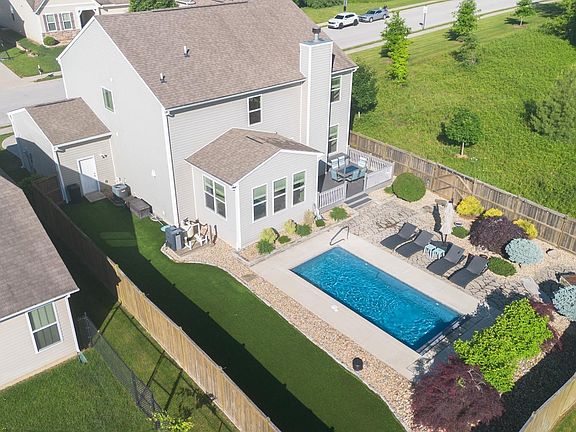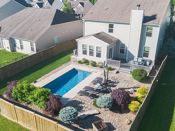 Located in the Stone Chase subdivision, this impressive 2-story home offers 2,948 finished square feet plus a 1,406-square-foot unfinished basement ready for your vision. Already equipped with an egress window and plumbing, the basement is primed for a 4th bedroom and 3rd full bathroom—giving you space to expand without the guesswork. Step into a private backyard retreat like no other. Designed for low-maintenance living, the professionally landscaped space features artificial turf, rock accents, and a greenspace—centered around a stunning heated in-ground fiberglass pool with an automatic cover. Whether relaxing, entertaining, or just enjoying the sunshine, this outdoor setup is unbeatable. Inside, the main level is all about functionality and flow: a dedicated office or playroom, formal dining room, oversized living area, open kitchen with two pantries, and a sunroom perfect for casual meals or a cozy reading nook. A powder bath and coat closet round out the main floor. Upstairs, you’ll find a versatile loft, laundry room, and three spacious bedrooms. The primary suite offers the full package: a spa-like en-suite bath with dual sinks, a soaker tub, walk-in shower, and a massive walk-in closet. The 3-car garage comes fully loaded with built-in cabinets and a moveable workbench, perfect for storage or weekend projects. With ample living space, room to grow, and one of the most well-designed backyards in the area, this home blends comfort, convenience, and lifestyle—just minutes from all the amenities of the west side.