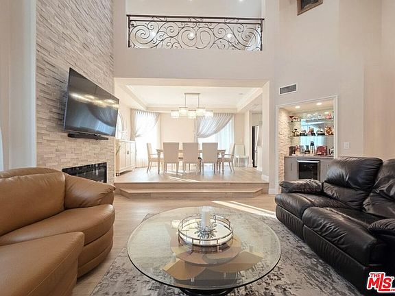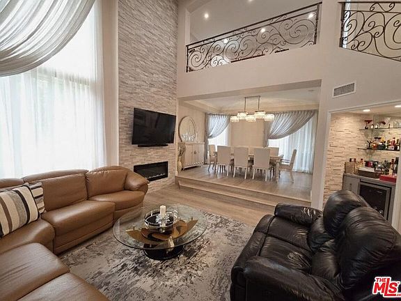 Welcome to this extraordinary penthouse residence where meticulous craftsmanship meets contemporary elegance. Spanning 2,100 square feet of thoughtfully reimagined space, this completely remodeled condo represents the pinnacle of Encino living. Upon entry, you're immediately captivated by the soaring cathedral ceilings in the living room, creating an impressive sense of volume and openness. The great room showcases designer lighting fixtures, including a stunning crystal chandelier, and features a floor-to-ceiling stone accent wall housing a sleek linear fireplace. Elegant drapery frames floor-to-ceiling windows that flood the space with natural light. The home's crown jewel is the expansive primary suite, a true sanctuary offering generous proportions and direct access to your private walk-in closet featuring custom built-in shelving with warm wood backing for a high-end boutique feel. The spa-inspired primary bathroom is nothing short of spectacular, with its modern gray palette, marble-look porcelain tile, freestanding soaking tub, frameless glass shower enclosure, and dual vanities with quartz countertops. The kitchen balances style and functionality with white shaker cabinetry, stainless steel appliances including double ovens, granite countertops, and abundant storage including glass-front display cabinets. A secondary bedroom offers serene tones and classic furnishings, while an additional contemporary bathroom features backlit mirrors and clean lines. Step outside to your private rooftop deck an entertainer's dream with wood-look porcelain tile accent walls providing both privacy and modern aesthetic appeal. This expansive outdoor retreat offers the perfect setting for al fresco dining and relaxation under the Southern California sky. Practical luxuries include a dedicated laundry room and convenient side-by-side parking. The prestigious community offers resort-style amenities: two sparkling pools, two spas, sauna, recreation room with pool table, and secure gated entry with controlled access. This penthouse is available unfurnished or as a rare turnkey opportunity fully furnished with designer pieces, complete cookware, dining ware, electronics, and artwork as photographed. Simply bring your suitcase and begin living the elevated lifestyle you deserve. Experience penthouse living where every detail has been carefully curated for the discerning resident seeking both luxury and convenience in one of the Valley's most desirable locations.