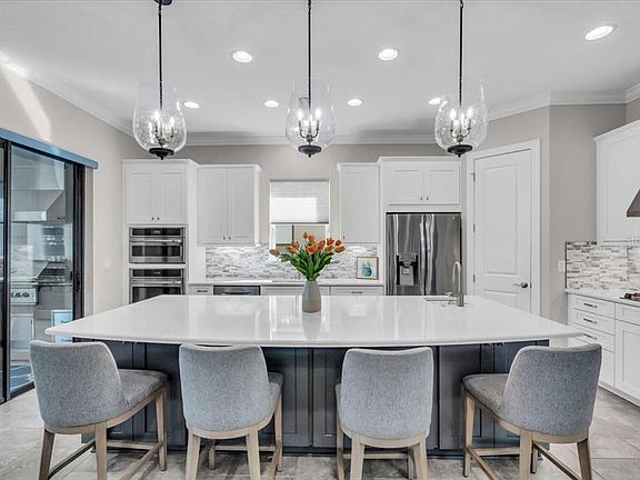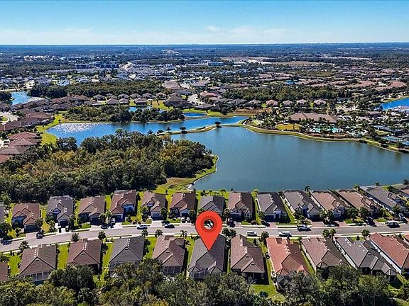 Welcome to this remarkable Taylor Morrison 3/3 plus den (Lazio Model) in the highly desired Esplanade at Artisan Lakes. Located in North Manatee County, this home is move-in ready! The open floor plan looks out to a lush preserve that offers privacy while enjoying the extended outdoor living space. The professional landscaping and remote-controlled privacy shades on the cage creates a tranquil oasis while enjoying the heated chlorine pool and waterfall. Dip your toes in the pool while lounging on the sun shelf. Ten-foot ceilings, trays, crown molding and eight-foot solid-core doors throughout the home are a few of the many impressive builder options, including bullnose corner walls. The gourmet kitchen has a expansive kitchen island, five-burner gas cooktop, prep sink, and a custom-designed pantry-all a chef’s dream! The kitchen features soft-close drawers, roll-out shelves in cabinets and under-mounted lighting in the kitchen. Bay windows with custom cornice and room darkening remote-controlled shades provides a view of the preserve from the main bedroom. The spacious walk-in main closet has generous storage and three tiers of hanging space. The study with pocket doors features custom wood shutters, and a built-in queen Murphy bed. The second bedroom has an en-suite bathroom with walk-in shower and room-darkening shades. The third bedroom has custom wood shutters and adjustable shelving in the closet. Countless phenomenal upgrades and finishes throughout! Full-house Generac generator and full-house surge protector, whole house security system, Cat 5-Hurricane rated remote-controlled storm shutters enclose the lanai living area along with a metal roll down hurricane shutter for the kitchen sliding door. Remote-controlled lanai awning provides additional shade to the living area. Five ceiling fans indoor and two outside, plus five smart televisions. U/V light on air handler improves indoor air quality. Laundry room includes built-in cabinets, a laundry room sink in addition to the washer and dryer. There is a full-house water softener and conditioner including reverse-osmosis water in the kitchen prep sink, upgraded Bosch dishwasher, and abundant storage space. Tandem two-car garage with sealed floors includes four generous overhead storage racks and a ceiling-mounted bike rack. New Leaf Filter gutter covers on gutters throughout and a screened entryway. This pet-free home has been immaculately and lovingly maintained by original owners with no expense spared and no detail overlooked. It is truly a move-in ready home, inside and out. Esplanade at Artisan Lakes is a gated resort community offering two pools, two hot tubs and a resistance pool. There are two amenity centers, a dog park, pickleball and tennis programs and classes, along with special interest groups and clubs. The wellness program includes strength and cardio equipment, fitness classes, personal training, and aquatic classes. Enjoy the spa services, social events, wine tastings, and cooking experiences. Yard maintenance and irrigation, cable/internet/wi-fi, are also included with the HOA. Esplanade has quick and convenient access to U.S. 41 and I-75 from Moccasin Wallow Road, with shopping and a new medical facility and hospital under construction just a mile away. Beautiful beaches at Siesta Key, Anna Maria Island and St. Petersburg can all be reached in under an hour.