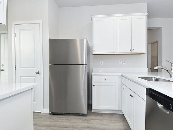 Now available in Park Meadow - the stunning American floorplan! This beautiful single-story home offers three spacious bedrooms and two modern bathrooms, designed for comfort and style. Enjoy an open-concept layout perfect for entertaining, featuring a chef-ready kitchen with rich wood cabinetry, crown molding, quartz countertops, and durable plank flooring. The bright owner's suite offers a peaceful retreat with multiple windows and plenty of natural light. A finished garage and fully fenced backyard add convenience, privacy, and functionality to this move-in ready home.