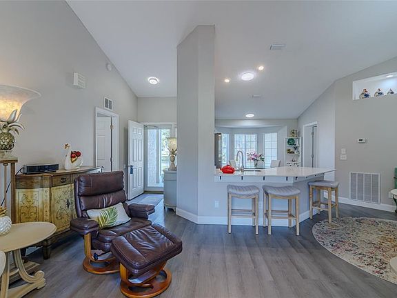 Guest bedroomCeiling fanFlorida roomScreened cathedral enclosureOpen floor planLots of storageLaundry room