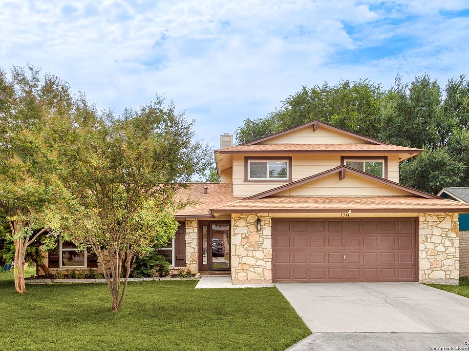 Charming 3-bedroom, 2-bath home in Northeast San Antonio. Wonderfully maintained home offering comfort, style and convenience. Step inside to find an open concept living area filled with natural light. Spacious kitchen with ample cabinet space and updated finishes. Culinary enthusiasts will appreciate the gas cooking and stainless-steel appliances, while the adjoining breakfast area provides a charming space for morning meals. Energy efficient windows! Cozy up around the natural stone fireplace in the central living room, a perfect spot for relaxation and family gatherings. Retreat to the plush-carpeted bedrooms upstairs, offering comfort and privacy for every family member. The serene backyard is a true oasis, featuring a lovely garden and a canopy that provides shade for outdoor enjoyment. This home is ready to welcome you into a lifestyle of ease and elegance. Located to major highways, shopping and restaurants. Schedule your showing today!