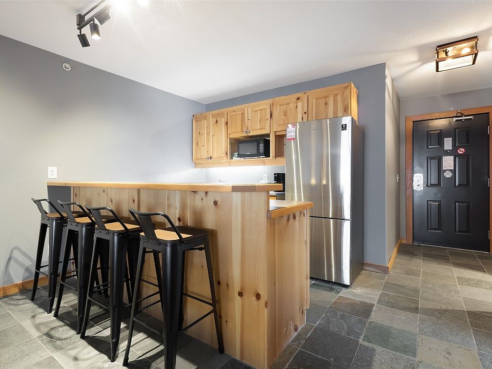 Discover the ultimate ski-in/ski-out opportunity with this top-floor, corner unit nestled right in the heart of the village! Whether you're an investor looking for a prime rental property or a mountain lover seeking your own slice of alpine paradise, this spacious 1-bedroom, 1-bathroom gem is ready to impress. Step inside one of the largest units in the building and be greeted by an open, airy space that comfortably accommodates up to 4 guests. Enjoy the warmth of the gas fireplace, whip up meals in the fully equipped kitchen that whole family can enjoy. Strata fees include heating, cooling, wifi and cable making it an effortless investment with no surprises. Leave your car in the designated parking spot, store your gear in the private locker, and hit the slopes right beside the Plaza Chair. The location, space and amenities tick all the boxes to ensure you maximize on nightly rentals. After a day carving through fresh powder, relax in the communal hot tub or refuel at the renowned Black Diamond Restaurant—both just steps away. A property like this doesn't come along everyday and doesn't just make for a great investment, but a place to create memories for a lifetime