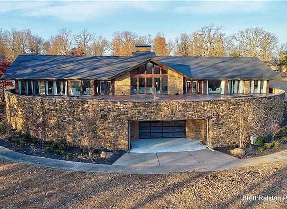 Timeless, stately, and luxurious one-of-a-kind estate. Impeccable native stonework in Frank Lloyd Wright "Round House" type architecture nestles on 2.73 acres of scattered oaks (adjoining 2.5+ - acres available). Totally remodeled, perfect for life-style and hosting small or large gatherings. 20' 2-sided contoured native hand carved curved stone wall incorporating great-room fireplace for excellent entertaining atmosphere. 3 fabulous kitchens! Walnut throughout the home, study, great room ceilings, custom spiral staircase, and each interior door with Sherle Wagner (same as The White House!) brass hardware. New plush carpeted bedrooms. Castle-like setting, wrought iron chandeliers, and linen pendent lighting selected to highlight architectural design. Interior design touches are too many to list. New furnishings convey! Extra-large bedrooms and closets storage space, fitness room with full bath and steam spa, shower, large game area, spacious home theater and heated cooled 3, 600 sq.ft garage. Worth the trip to come see!