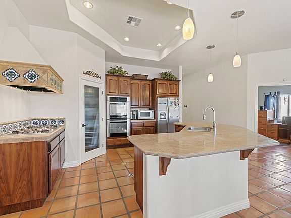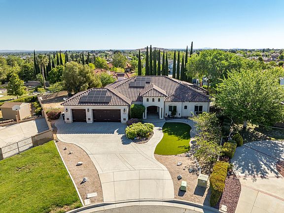 Custom build Mediterranean master piece - one of kind home - architectural digest quality home - rare find, professional landscaping- rose garden, imitation grass/ zero landscaping and all stamp concrete walk ways and driveway. step into your custom mahogany/glass door into your formal entry with Mediterranean tile and arches - WOW - formal dining area - step into your grand kitchen great room - all custom mahogany cabinets, huge center island quartz counter tops on the huge center island, all appliance are high end electolux, double oven, cook top, dishwasher, custom hood top and vent, large walk in pantry, custom refrigerator stays, custom mahogany built in's entertainment center is one of a kind, center piece fireplace, breakfast bar, informal dining, office could be 5th bedroom, hall bedroom is double door/ den option, primary bedroom is massive and has doors out to the patio, the primary bathroom has custom mahogany vanity and built ins with custom tile counters, huge garden tub and massive walk in shower for 2 or more - wow - huge walk in closet, 3 additional bedroom, jack and jill bathroom with custom tile and glass, indoor laundry room with sink, backyard is master piece for those who like to entertain - huge covered out side dining room, all stamp concrete, step down to your custom tiki room with granite counters, BBQ, cook top and refrigerator, fire pit and furniture may stay depends on the offer, large lot .46 of a acre, home has a leased solar system - buyer needs to qualify and assume, oversized 3 car garage with high ceilings, finished and heavy insulated doors. This is your chance to own a custom built home with high end feature and the end of a cul de sac - run don't walk this ones a winner.