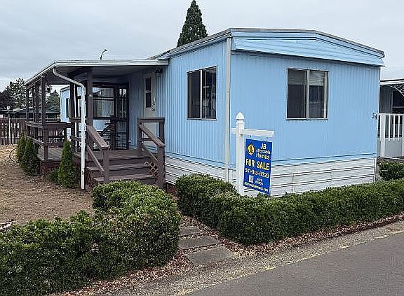 This cozy home is located in a quiet retirement community with a swimming pool and rec building. The home has 2 ductless heating and cooling systems, and all appliances are included. The home also has a large front porch for sitting and relaxing.