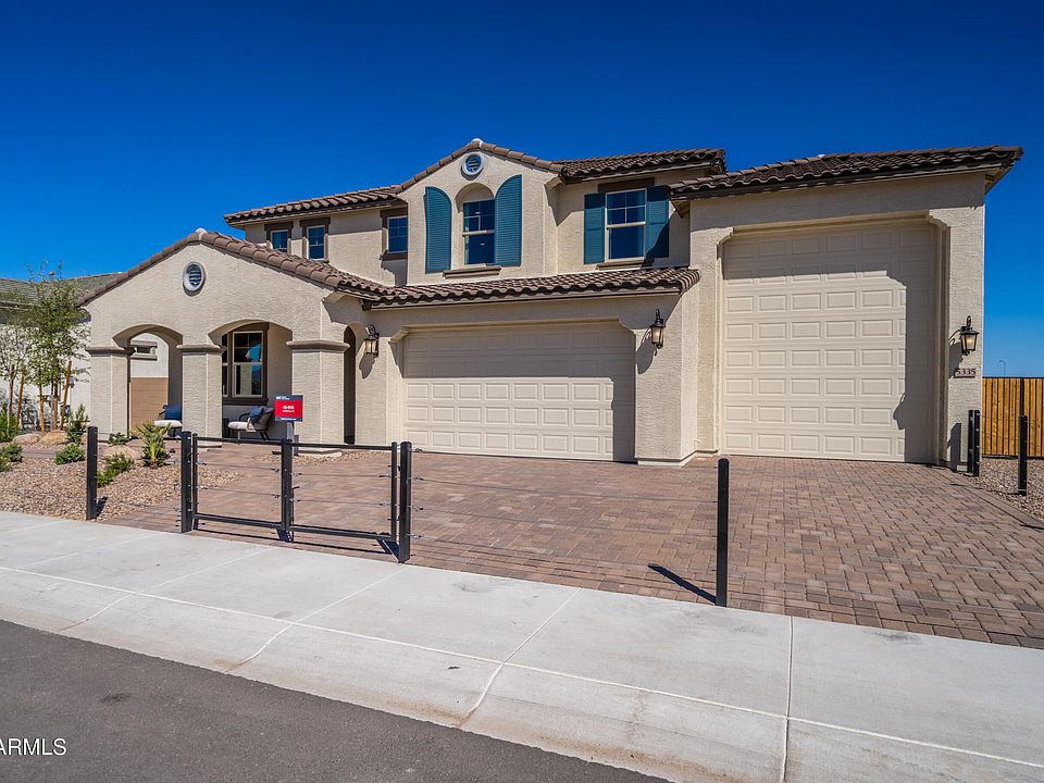 What's Special: No Rear Neighbors | Oversized Lot | RV Garage. Model Home Leaseback - Available Now for January Closing! This model home purchase includes our Model Leaseback Program. Model leaseback terms vary by model home. Please see a Community Sales Manager for additional details. Restrictions may apply. Built by America's Most Trusted Homebuilder. Welcome to the 55-RV3 at 5335 N 177th Lane in Allen Ranches Fiesta. This two-story home offers 2,626 square feet with 3 bedrooms, 2.5 bathrooms, a flex room, a loft, and both a 3-car tandem and RV garage. All bedrooms are upstairs for added privacy. The open-concept great room connects to the dining area and kitchen, with access to your backyard oasis. The primary suite includes double sinks and a spacious walk-in closet. MLS# 6922480 Additional Highlights Include: Garage service door, AC in RV garage, insulated garages, gas appliances, washer, dryer and refrigerator included, fully landscaped model home with pool, quartz countertops, upgraded tile and carpet throughout home, surround sound, cabinets in laundry room with sink and can lights in every room.