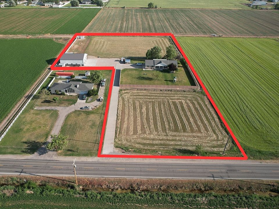 This rare 4.37-acre Hooper property blends comfortable rural living with eligible commercial rezoning-making it an ideal choice for investors, entrepreneurs, or anyone eyeing long-term potential. Flat terrain, great frontage, and easy access set the stage for a future live/work setup, small business expansion, or prime commercial development. With Hooper on the rise, opportunities like this don't last. The current 3-bed, 2.5-bath rambler offers nearly 1,850 sq. ft. of easy, single-level living, complete with an open floor plan, 3-car garage, new furnace, water heater, reverse osmosis system, remotely controlled sprinkler system, and a low-maintenance exterior. Enjoy the mountain views, covered patio, and mature trees while relaxing. And the true game-changer? An insulated and powered 50'x60' detached shop with three oversized bays (all with garage door openers)-perfect for large vehicles, equipment storage, business use, or your next big idea.