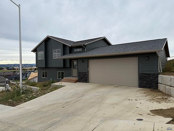 Welcome to this beautifully designed 3-bedroom, 1-bath split-level home in the highly desirable final phase of Hillsview Subdivision—where quality construction, modern style, and everyday convenience meet. At the heart of the home, you’ll find a bright, open kitchen with a custom tiled backsplash and generous workspace—perfect for cooking, entertaining, or gathering with family and friends. The thoughtful design continues throughout, with steel powder-coated railings, upgraded Anderson windows, and stone accents that enhance the home’s curb appeal. The spacious unfinished basement provides the flexibility to create an additional bedroom, bathroom, and family room—allowing you to design a space that grows with your lifestyle. Step outside and take in the incredible views of the Black Hills right from your deck and front steps—a daily reminder of the beauty that surrounds you. All of this is located just minutes from Elk Vale Road, Ellsworth Air Force Base, and walking distance to East Middle School. Builder is offering a limited time $10K builder incentive.