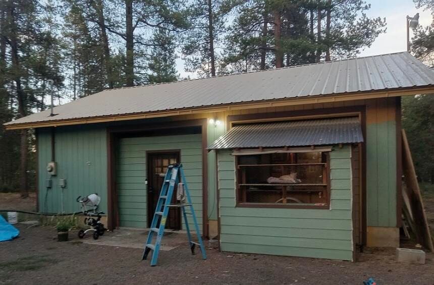 $30,000 Price Drop! Escape to Beautiful Central Oregon! This 896sf shop building was converted over time to a cute and cozy recreational cabin. Sale is AS-IS. Great vacation base, project for a contractor, or build your home here and use cabin for a guest house or an ADU? Small 320sf 2-bay garage. Covered deck. 2 Full RV Hook-ups. Metal roof on all buildings. The 3 year old well produces 20 GPM. Septic tank will likely need to be replaced eventually, but drainfield passed inspection in 2022. Lots of trees for privacy and only one block from paved road. Close to La Pine State Park, Deschutes River, Newberry Caldera National Monument, and Cascade Lakes Scenic Byway. Buyer to do due diligence with Deschutes County on all building codes and property uses.