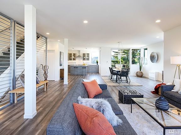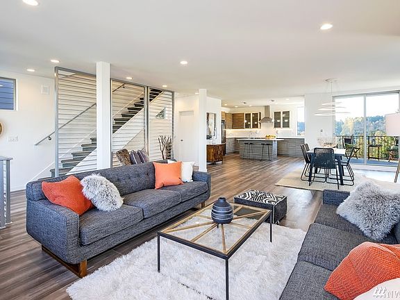 Unique Modern New Construction ridgetop stand-alone home w/gorgeous views highlighted by the Cascades & Olympics.Enjoy the sun-drenched spaces & 3 levels of luxury offering 4bed/3.5 baths including a Master bed+bath w/heated bath floor & views from every room. Bright open floor plan w/gourmet kitchen, SS appliances, hardwoods & private deck.Separate living+bed+bath on the lower level. Splitduct heat & AC system for efficiency & comfort.Prime location w/quick access to Alki & West Seattle bridge.