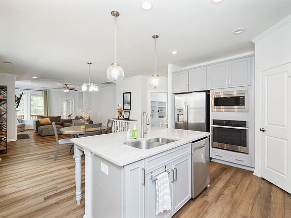Incredible home with screened porch and deck that backs to protected area with hardwood trees! Kitchen with gray cabinets, SS appliances, gas cooktop, granite countertops and walk-in pantry. 1st floor primary suite has tray ceiling, lots of natural light, privacy, large WIC, shower with subway tile and dual vanity. Guest suite as well as flex room and laundry with window and hanging racks on the main floor. Family room has gas fireplace and the open floorplan is perfect for entertaining! Upstairs boasts an additional bedroom, full bath, and spacious loft. Close to Brier Creek shopping, restaurants, 540, & 40! Lawn Maintenance included in HOA fee!
